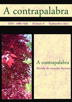 VERBALINA presenta una nueva publicación de la revista A contrapalabra. En nuestro número 6, septiembre 2011, contamos con los poemas de Pilar Fiunte, Esther Bermejo, César Ulla, Mª José Querencia, Néstor García y Carolina Tapia. En nuestra sección de Narrativa podrás leer los relatos de Norberto Ronchetti, Jesús Castro Lago, Mª Rosario Martínez, Àlex José Recoder, Mª Fuencisla López, Pedro M. Alonso Da Silva, Brenda Salva, Ángeles Sánchez Portero, Invisibilicrede y David Moreno Sanz.